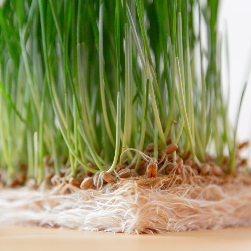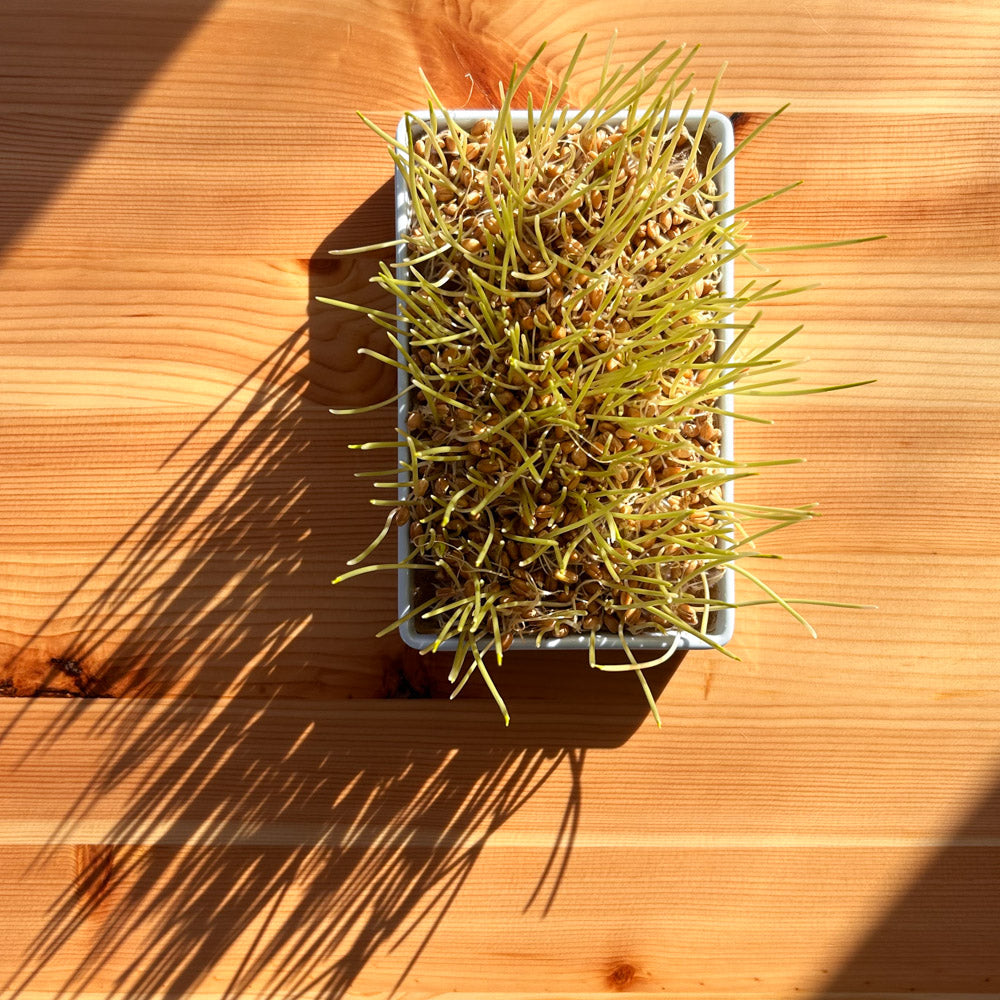 organic, non-GMO wheat seed. All you need is water and a windowsill or